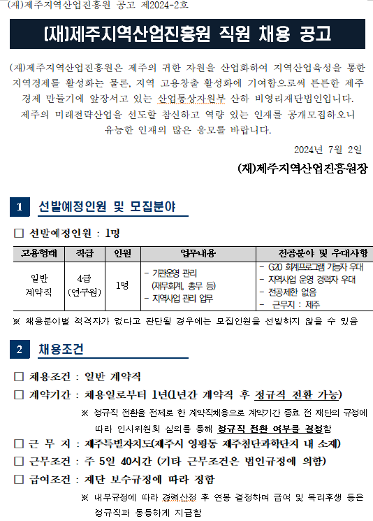 붙임. 2024년 제주지역산업진흘원 직원 채용 공고문-최종.hwp