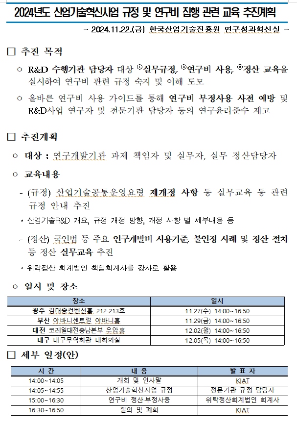 [교육 행사] 2024년도 산업기술혁신사업 규정 및 연구비 집행 관련 교육