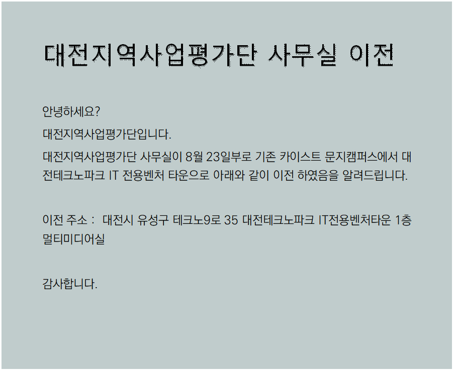 (재)대전지역사업평가단 사무실 이전 안내
